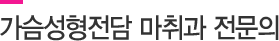 한 분야 전문의에 의한 진료가 아닌 유방전문 성형외과 전문의, 외과 전문의, 마취과 전문의, 영상의학과 전문의 등 유방에 관한 각 분야전문의의 협진을 통하여 최적의 시스템으로 진료합니다.